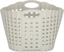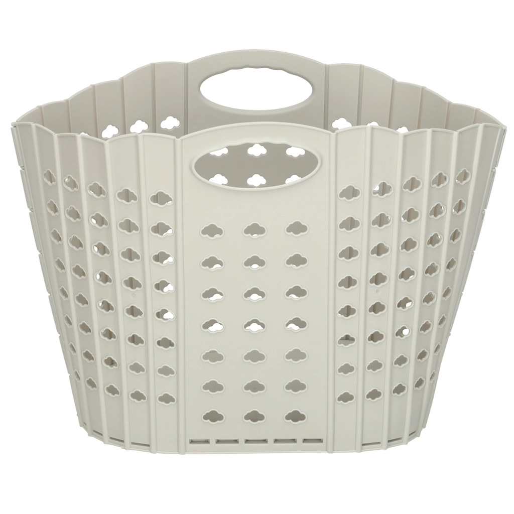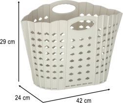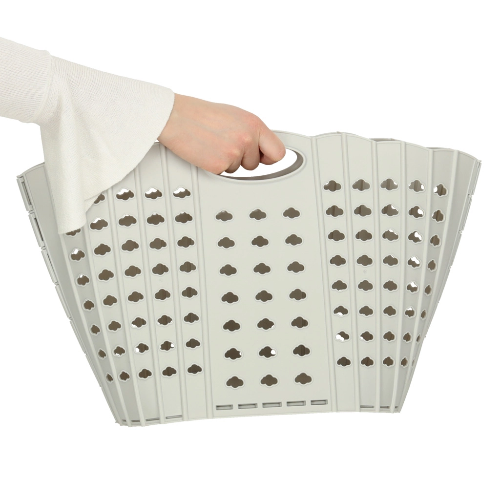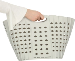 Практична сгъваема кошница за пране в сив цвят пести място и улеснява организацията в дома. Благодарение на интегрираните дръжки се пренася удобно, перфорациите осигуряват вентилация, а здравата пластмаса издържа на ежедневна употреба. Сгъваема конструкция, удобен захват и просторен обем правят кошницата идеален избор за баня, спалня и перално помещение.