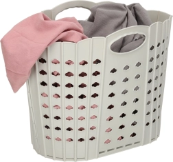 Поддържайте ред стилно и без усилие. Тази сгъваема кошница за пране се сгъва лесно на плоско, така че почти не заема място, когато не я използвате. Здравото пластмасово тяло с перфорации позволява движение на въздуха, което предотвратява задушаване и неприятни миризми.