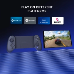 Разтегаемата конструкция побира широка гама телефони, а щедрото пространство отзад позволява удобно поставяне дори с калъф. Контролерът поддържа жироскопично управление в SWITCH режим, има макро бутони отзад, Turbo и изцяло преназначаеми бутони. Магнитният преден капак, накрайниците за стикове и предните бутони позволяват бърза персонализация на визията и ергономията.