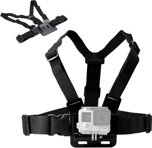 Универсален гръден колан тип Chest Mount за екшън камери предлага стабилни кадри от перспективата на гърдите и максимален комфорт. Благодарение на регулируемите ремъци и съвместимостта с камерите GOPRO, DJI, SJCAM и други е идеален за спорт, ски и колоездене. В комплекта са включени адаптер и монтажен винт за закрепване на смартфон, а меките и еластични ленти осигуряват удобство при носене.