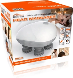 Media-Tech Head Massager е ергономичен ръчен масажор, който благодарение на четирите меки масажни глави със силиконови накрайници реалистично симулира професионален масаж с пръсти. Лек е, лесен за управление и идеален за ежедневна употреба у дома и в офиса.