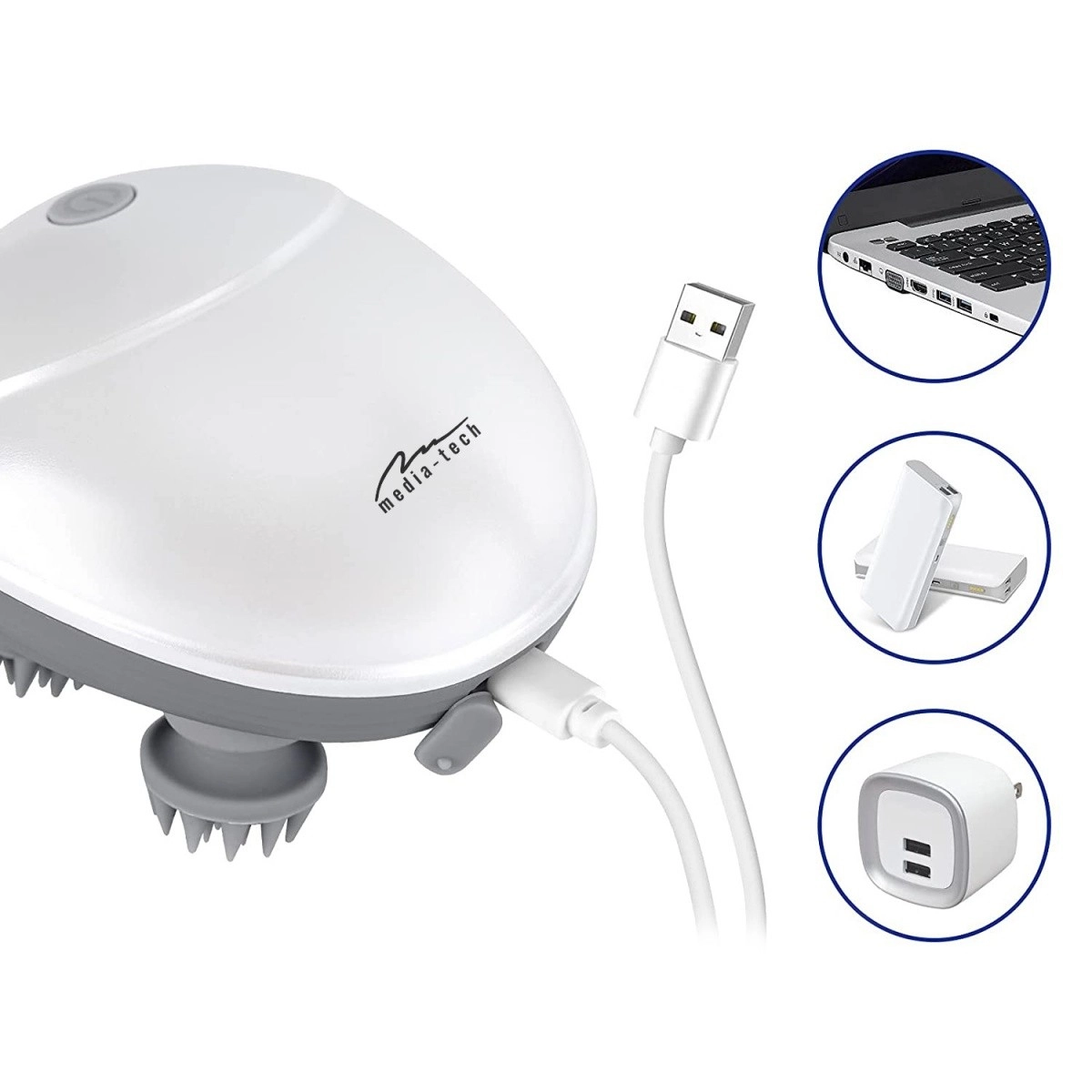 Насладете се на ежедневна релаксация с компактния масажор за глава Media-Tech Head Massager. Устройството имитира движенията на пръстите и осигурява нежeн, но ефективен масаж за освобождаване на напрежението. Идеален за масаж на скалпа, брадата, двойната брадичка и врата, помага при главоболие и умора и подобрява кръвообращението и общата релаксация.