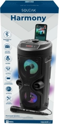 Практичност и допълнителни функции идват с удобната дръжка за лесно пренасяне и специална стойка за мобилни телефони. Освен това е оборудван с ясен LED дисплей и 6.3 мм микрофонен вход, което увеличава неговата полезност.
