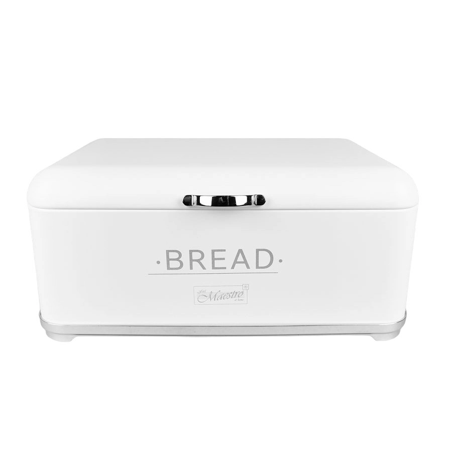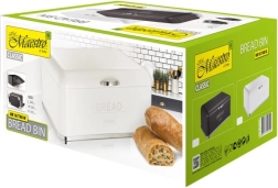 Кутията за хляб Maestro е стилен и функционален аксесоар за вашата кухня. Нейните компактни размери 34 x 16 x 22 cm позволяват лесно позициониране на кухненския плот. Висококачествената неръждаема стомана гарантира дълъг живот и устойчивост на повреди, а класическият бял цвят със сребристи елементи добавя елегантност.