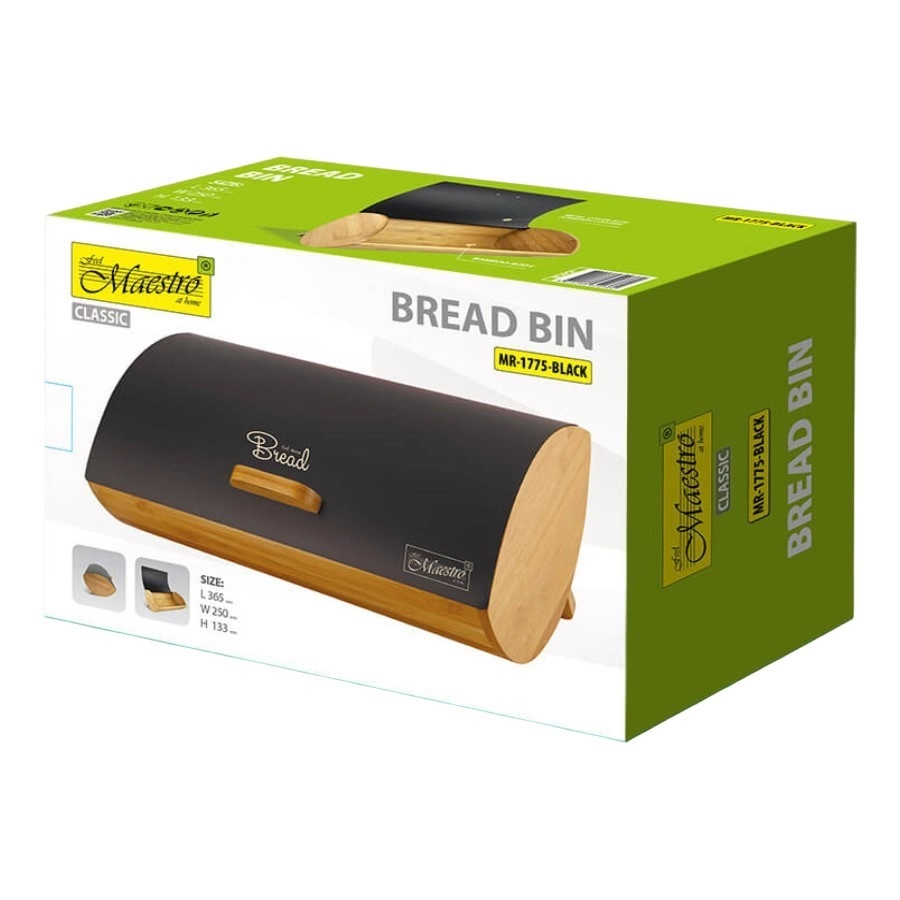 Този стилен контейнер за хляб от марката Maestro е изработен от висококачествена неръждаема стомана и бамбук, което гарантира дълъг живот и устойчивост. Благодарение на горния капак, който се отваря нагоре, достъпът до печивата е лесен, като същевременно се запазва тяхната свежест. Използваните материали са щадящи околната среда, което ще зарадва екологично настроените потребители.