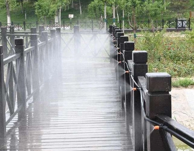 Фините капчици от 11 дюзи понижават температурата на околната среда и повишават комфорта на открито – идеално за горещи летни дни.