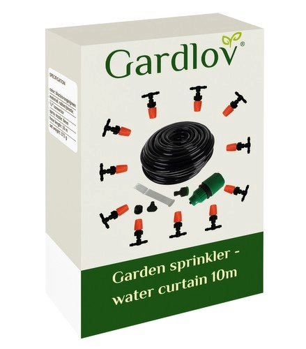 Водната завеса създава фина мъгла, която абсорбира топлината от околната среда и носи приятно охлаждане през горещите дни. Благодарение на 11 висококачествени дюзи с диаметър 6 мм покритието е равномерно и щадящо както за растенията, така и за хората. Инсталацията е бърза – достатъчно е да се свърже към стандартно водоподаване 1/2" и да се закрепи маркучът с приложените свински опашки.