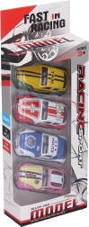 Този страхотен комплект предлага четири издръжливи и детайлно изработени състезателни колички, които е достатъчно да навивате назад и да пуснете. Благодарение на компактния размер 7 см са отлични за домашни надпревари, препятствени трасета и пътувания. Металната изработка осигурява по-дълъг живот и забавление без компромиси.