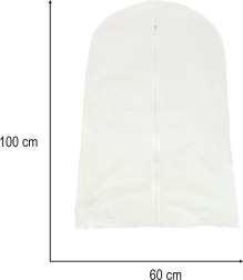 Практичен предпазен калъф за дрехи с размери 60 × 100 см поддържа облеклата ви в перфектно състояние. Благодарение на прозрачния материал лесно разпознавате съдържанието без отваряне, а ципът осигурява удобно поставяне и изваждане. Калъфът предоставя надеждна защита от прах и замърсявания както у дома, така и по време на път.