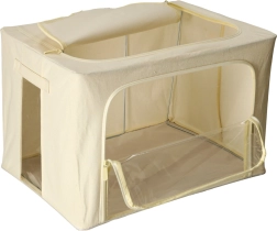 Тази просторна кутия за съхранение е идеална за прегледимо подреждане на текстил в спалнята, гардеробната и детската стая. Капацитетът от 100 литра побира спално бельо, одеяла, хавлии, играчки и сезонни облекла, докато качественият полиестер издържа на ежедневна употреба.