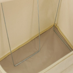 Вътрешната рамка запазва формата дори при частично запълване. Здравият полиестерен текстил защитава съдържанието и се поддържа лесно.