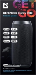 Насладете се на любимите си плейлисти с преносимия високоговорител DEFENDER Enjoy S100 в елегантно черно. Благодарение на безжичната технология Bluetooth свързвате телефона или таблета за миг и слушате без излишни кабели. Вграденият MP3 плейър и FM радио разширяват възможностите за забавление у дома, в път или на открито.