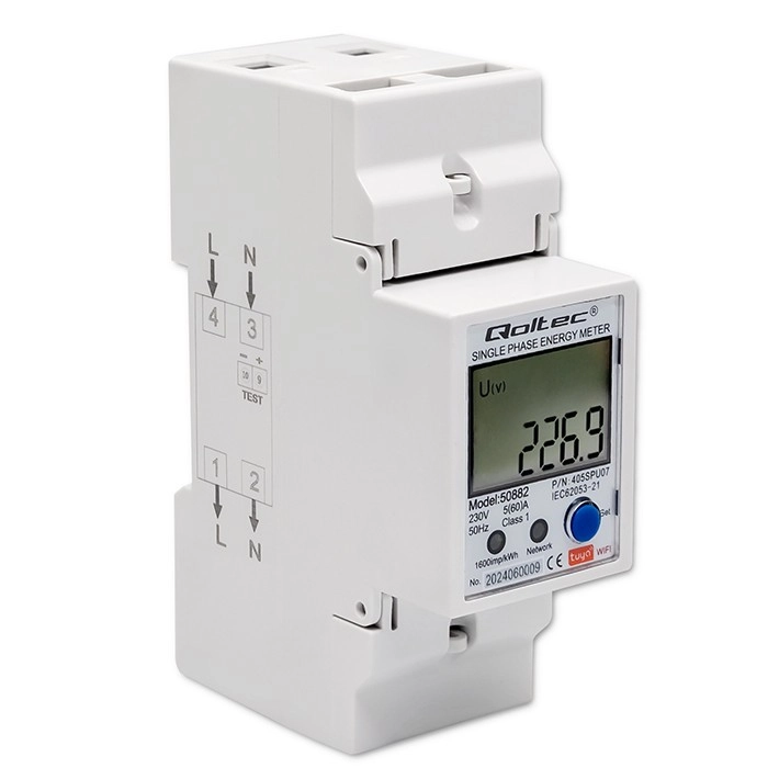Интегрираният Wi‑Fi модул позволява отдалечено наблюдение в приложението TUYA – откъдето и да сте, виждате текущата и кумулативната консумация и лесно откривате уредите с най-високи разходи. Устройството отговаря на стандартите IEC 62053‑21 и DIN EN50022, разполага с клас на точност 1.0, директно измерване 5(60) A и е подходящо за широк спектър приложения.