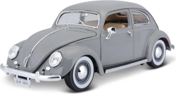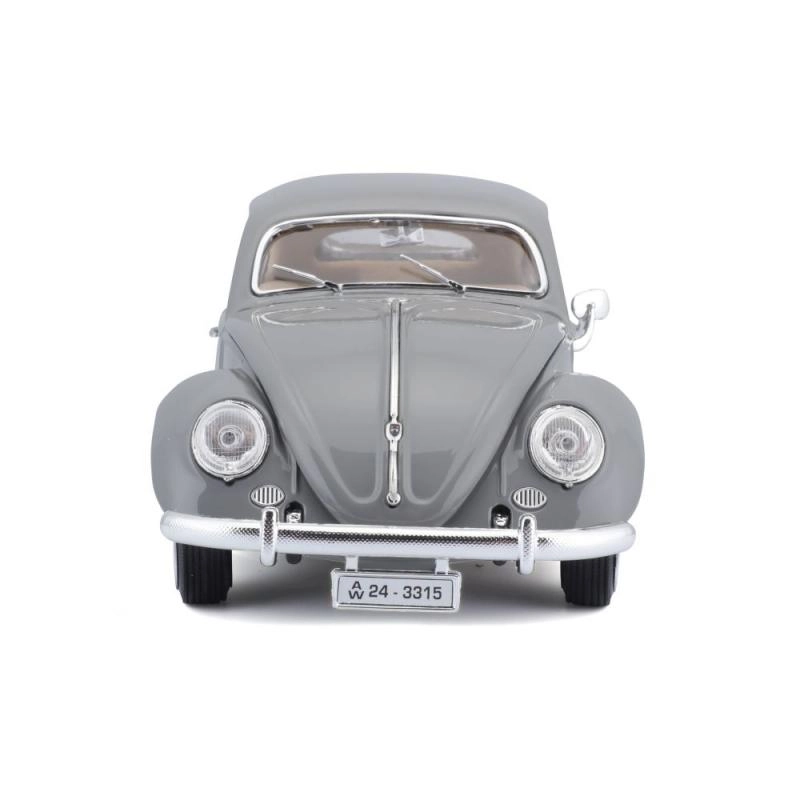 Метално тяло с фини детайли, хромирани брони и вярна пропорция на емблематичния „Бръмбар“ от 1955 г.