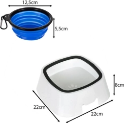 Купата е лека, лесна за пренасяне и бързо се сглобява за незабавна употреба. Благодарение на капацитета от 1500 мл е подходяща за кучета от всички размери. Част от комплекта е и практична сгъваема купичка с обем 350 мл, идеална за пътувания или активности на открито.