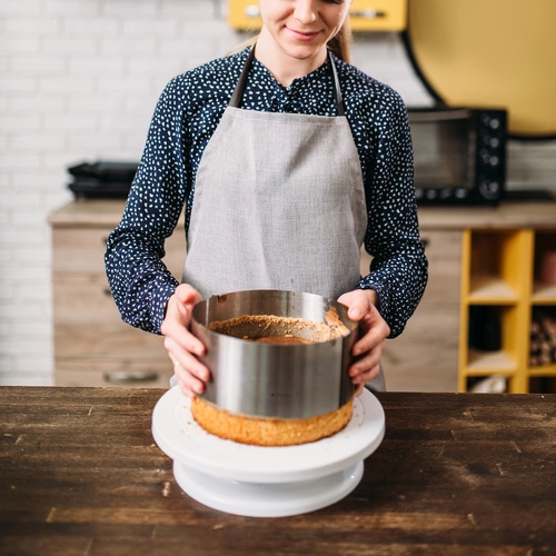 Справете се с високи блатове, чийзкейкове и наслоявани десерти. Рингът осигурява сигурна опора при печене и сглобяване.