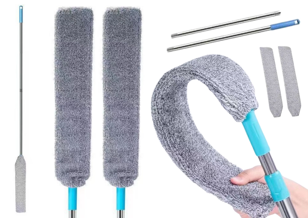Телескопичната дръжка позволява да настроите дължината според нуждите, което е идеално за почистване на ниски и високи повърхности, включително полилеи и високи шкафове. Благодарение на тази функция няма да са ви необходими стълби или столове, за да достигнете до всички нужни места.