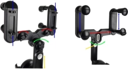 Четириточковият захват с винтове и пружинни рамена фиксира стойката здраво към огледалото и предотвратява приплъзване дори при неравни пътища.