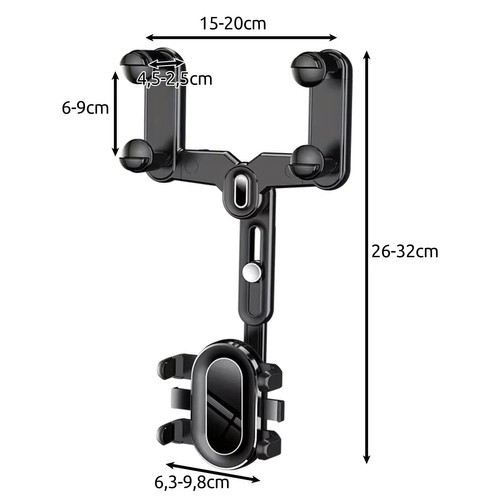 Универсалната въртяща се поставка за телефон за огледало за обратно виждане в кола XTROBB осигурява стабилно закрепване, пълна 360° регулация и защита на устройството и огледалото. Благодарение на здравата конструкция, пеноподложките и бързия монтаж без инструменти е идеална за навигация и хендсфри разговори без ограничаване на видимостта.