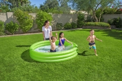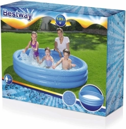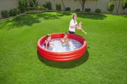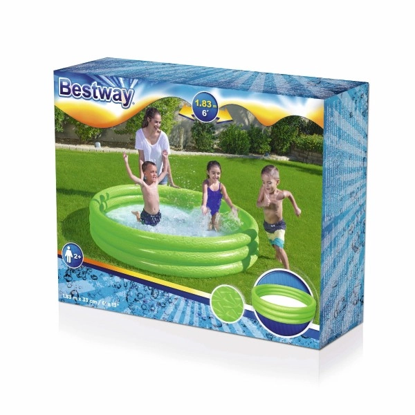 Зарадвайте децата и им осигурете лятно освежаване в просторен надуваем басейн с диаметър 183 см. Този трикамерен басейн е идеален като плитчинка за двора, предлага стабилна конструкция, бързо надуване и удобно дъно от омекотено PVC с противоплъзгащ ефект. Подходящ за деца от 2 години, в три атрактивни цвята.