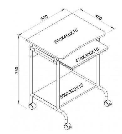 - Долен просторен рафт (50 × 32 cm) за компютърна кутия, принтер или други устройства.