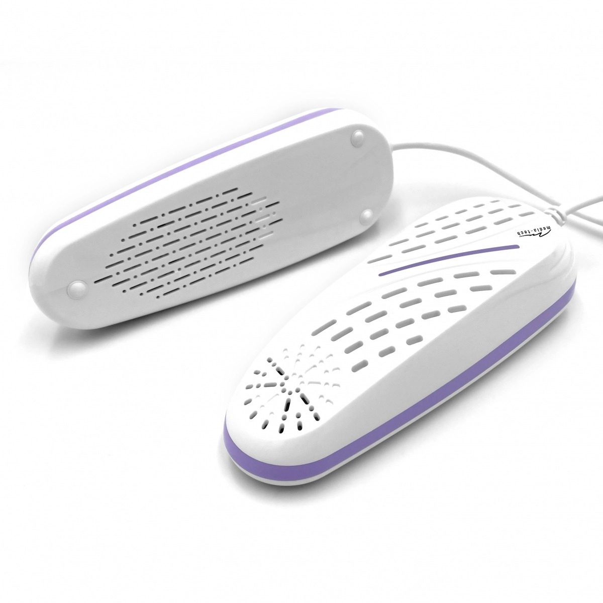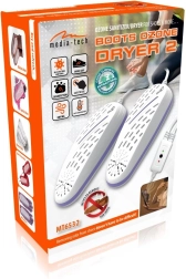 MEDIA‑TECH Boots Ozone Dryer 2 е компактен и лек сушител за обувки с технология за озонова дезинфекция, който бързо отстранява влагата и нежеланите миризми. Озонът, като силен окислител, ефективно намалява размножаването на бактерии и гъбички вътре в обувките и подобрява хигиената на ходилата.