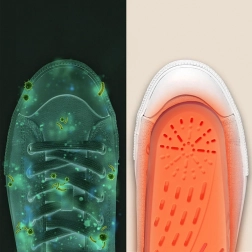 Интегрираната озонова технология помага за унищожаване на бактерии и спори на плесени, като ефективно елиминира неприятните миризми и повишава хигиената вътре в обувките.