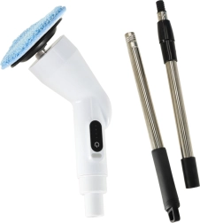 Електрическият въртящ се моп с девет вида накрайници бързо премахва прах, засъхнали петна и варовик. Трите скорости на въртене се адаптират към вида замърсяване и повърхността – от нежно полиране до интензивно търкане. Телескопичната приставка осигурява удобен достъп до подове, стени и ъгли без излишно навеждане.