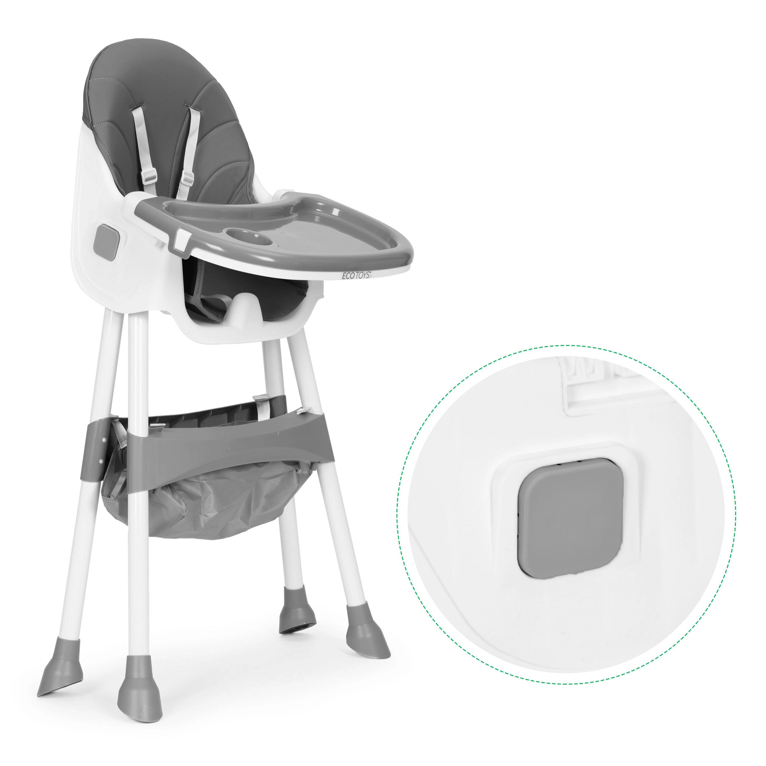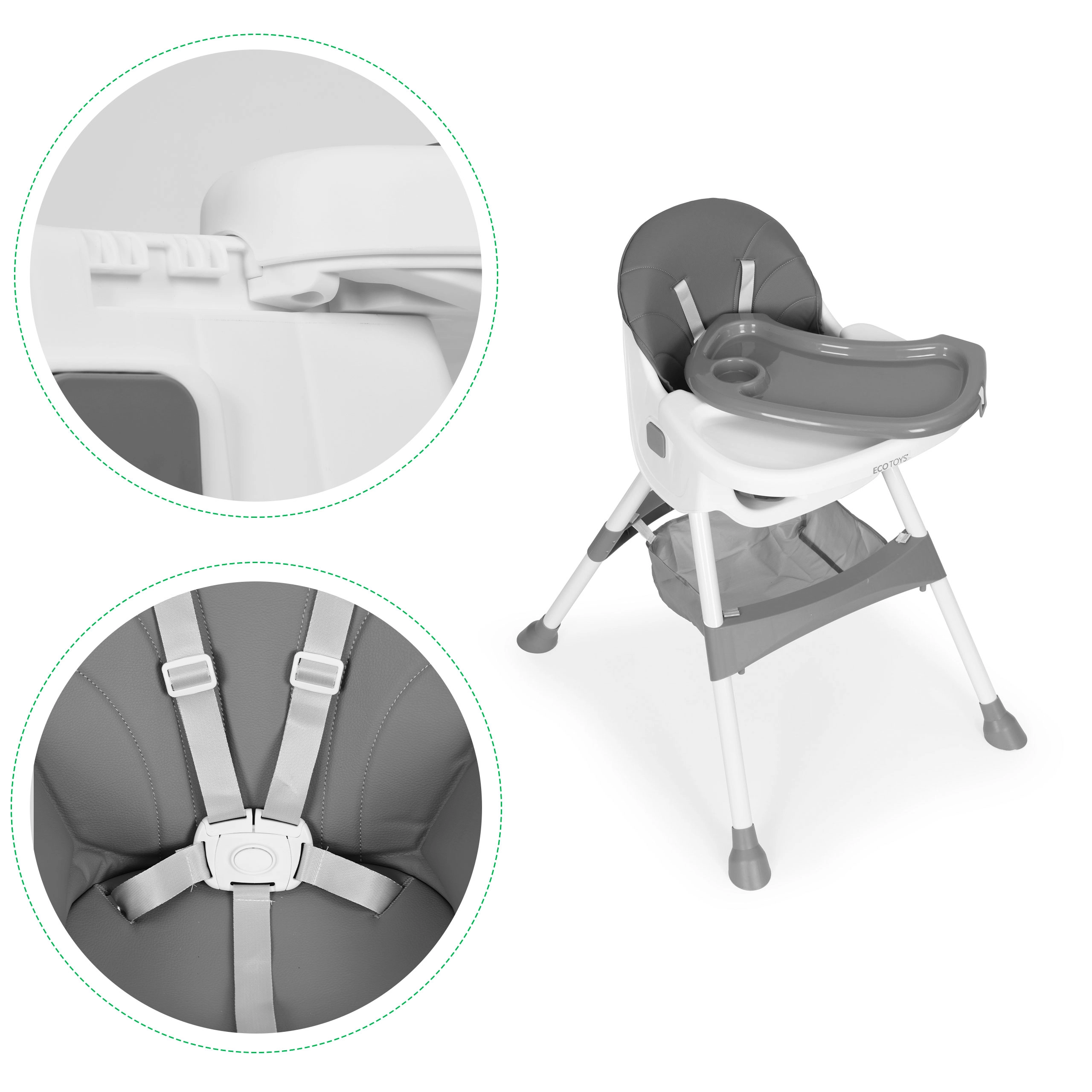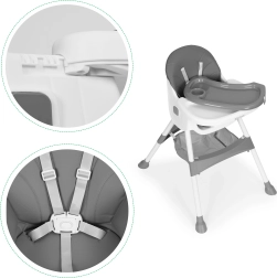 Детски стол за хранене с поднос и кошница, 5-точков колан, ECOTOYS – Сив