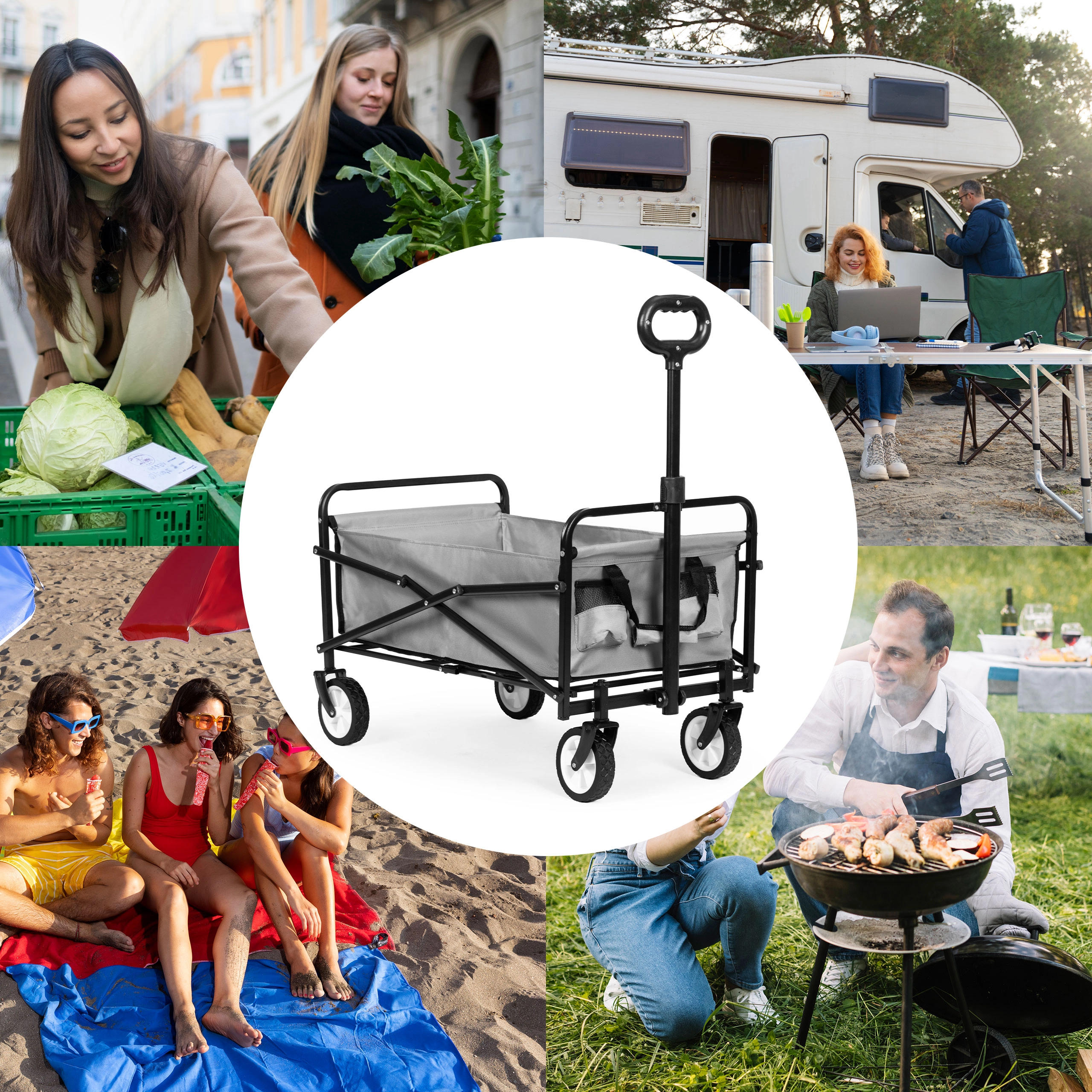 Тази практична количка улеснява работата ви в градината и пренасянето на покупки. Нейните функции ще оценят и любителите на плажа. Удобната дръжка, сгъваемият дизайн и здравият метален корпус правят тази количка незаменим помощник.