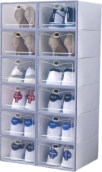 Стилен и функционален шкаф за обувки, който се адаптира към вашите нужди. Благодарение на модулната конструкция лесно настройвате формата и подредбата – подходящ за антре, спалня, дневна, офис, както и за мазе или таван. Прозрачните панели осигуряват прегледност, а вратите с куки поддържат ред и чист външен вид.