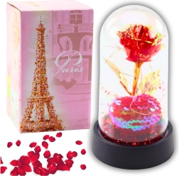 Открийте красотата на вечната кристална роза под прозрачен купол, която със своята елегантност очарова всеки. Идеална за онези, които искат да подарят израз на любов, който не увяхва. LED осветлението нежно озарява розата, добавяйки към атмосферата уют и романтика.