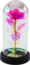 Кристална роза под купол с LED осветление е елегантен и символичен подарък, който изразява Вашите чувства и внася изключителен характер във всеки интериор. Нейните променящи се цветове под влиянието на нежната LED светлина създават незабравима атмосфера, идеална за романтични поводи.