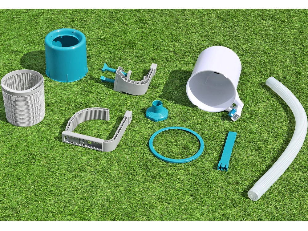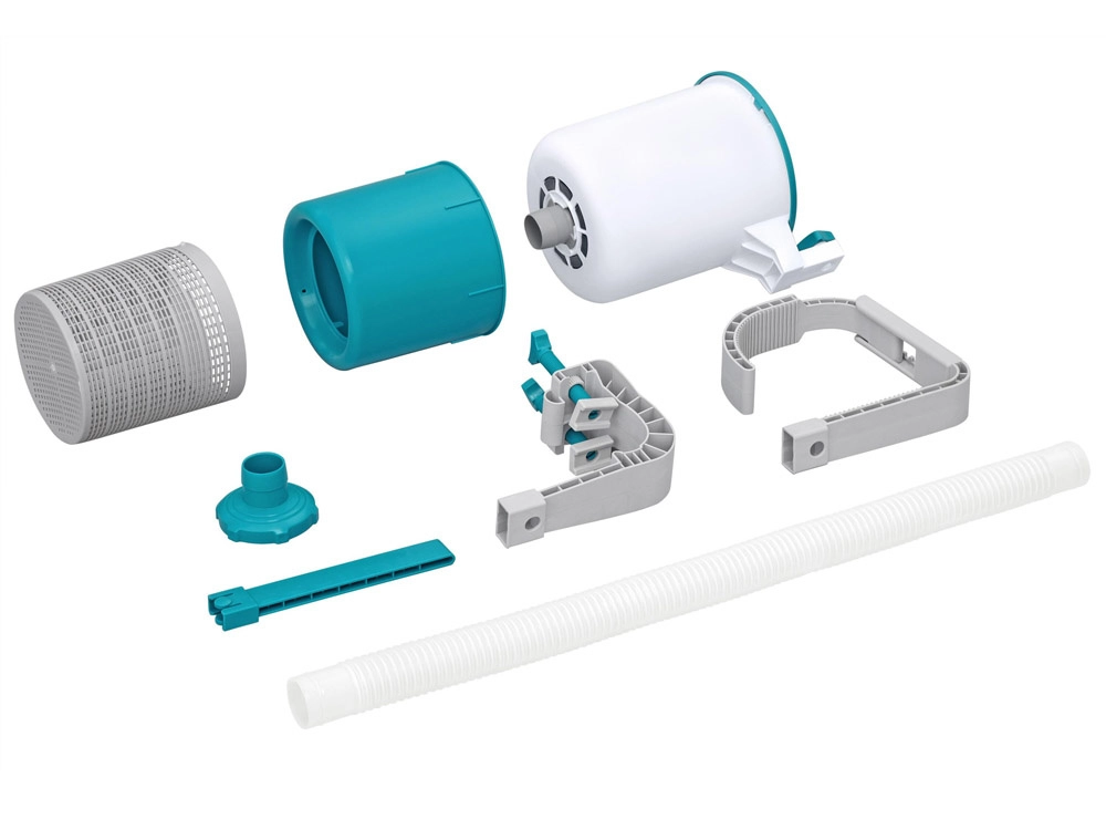 - Автоматично почистване след свързване към филтърна помпа – по-малко работа, повече къпане