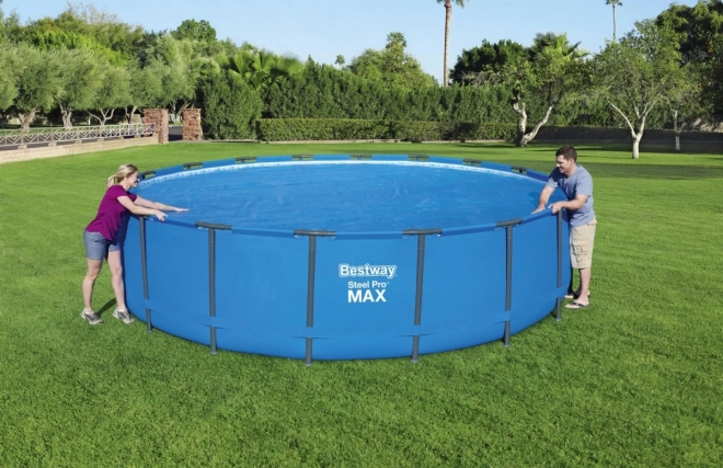 Соларното покривало BESTWAY е проектирано за максимален комфорт и енергийна ефективност. Мехурчестото фолио с висок дял въздух плува на повърхността, като така намалява изпарението и ограничава топлинните загуби. Слънчевите лъчи преминават през фолиото и спомагат за естествено затопляне на водата, така че да се наслаждавате на къпането по-рано и по-дълго.