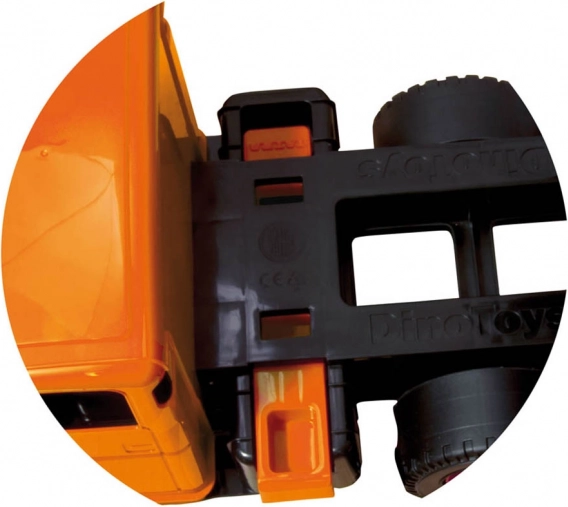 Каросерията може да се обезопаси срещу самоволно повдигане и се управлява лесно при изсипване на пясък или играчки.
