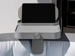 Един рафт, четири възможности: стабилна масичка за напитки и снаксове, покрито отделение за дреболии, закачалка за хавлии и сигурен държач за таблет за гледане на филми в джакузито.