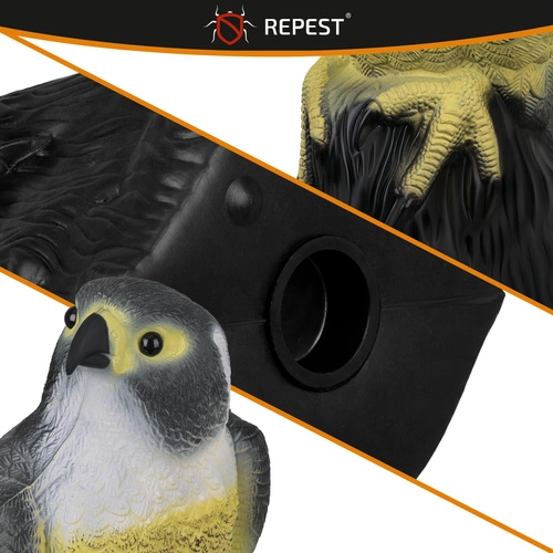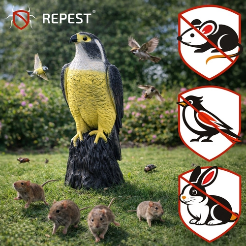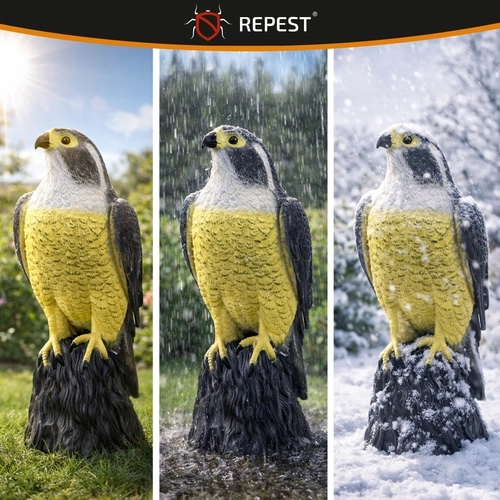 Реалистичната макета на сокол е ефективно и безопасно решение за защита на открити и закрити пространства. Естественият вид на хищника засилва инстинктивния страх у дребните птици и помага да се пазят реколтата, фасадите и балконите без химикали и шум. Подходящо е и като визуално плашило за дребни гризачи.