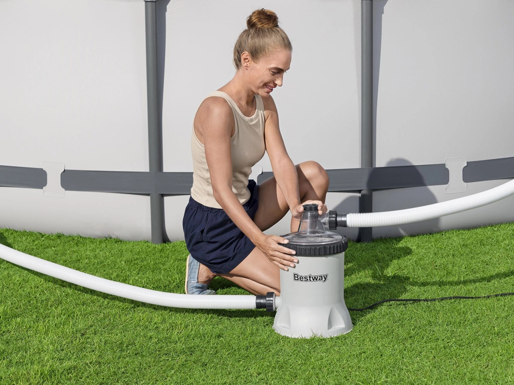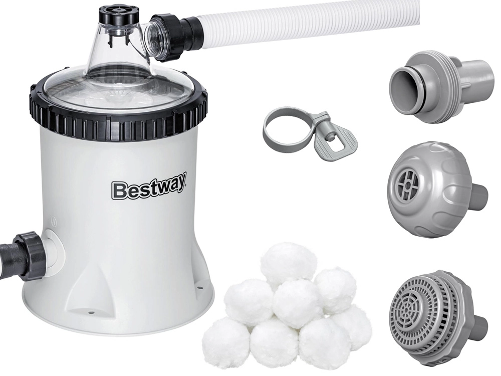 Мощна басейнна помпа BESTWAY с дебит 5678 л/ч за кристално чиста вода. Използва филтърни топчета Polysphere, които осигуряват многостепенна филтрация, по-дълъг живот и лесна поддръжка. Идеална за надземни басейни с обем 1 100–31 700 л.