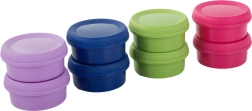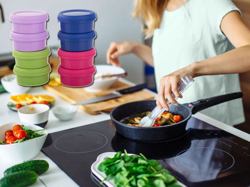 Кутийките са изработени от безопасна пластмаса без BPA, подходяща за контакт с храни. Поддържат се лесно – можете да ги миете на ръка или в съдомиялна. Различните цветове на капачките ви помагат бързо да разграничите съдържанието без отваряне – идеални за кетчуп, майонеза, горчица, хумус, подправки или ядки.