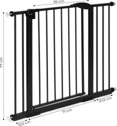 Регулируемата ширина 74–105 см лесно се адаптира към повечето отвори в дома. Приложените надставки и обтегателни винтове позволяват прецизна настройка. Бариерата е подходяща не само за родители на малки деца, но и за собственици на кучета и котки, които трябва безопасно да разделят пространствата.