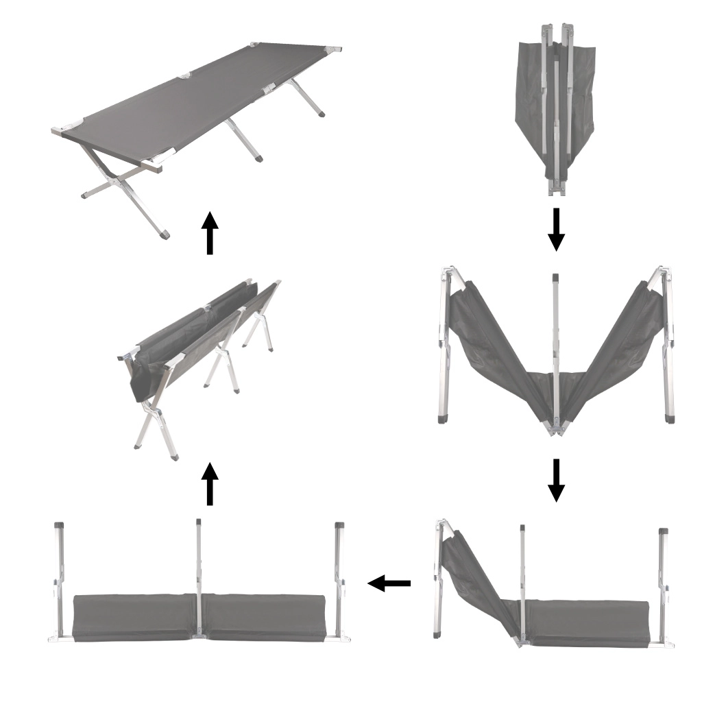 Практично сгъваемо полево легло с здрава стоманена конструкция и калъфка от 100% полиестер 600D осигурява удобно спане у дома и сред природата. Разгъва се лесно за броени секунди, леко е за пренасяне и благодарение на калъфа с дръжка е идеално за къмпинг, градината или като резервно легло за гости. Стабилна рамка, товароносимост 150 кг, бързо сгъване и издръжлив, лесен за почистване материал гарантират комфорт при всякакви условия.