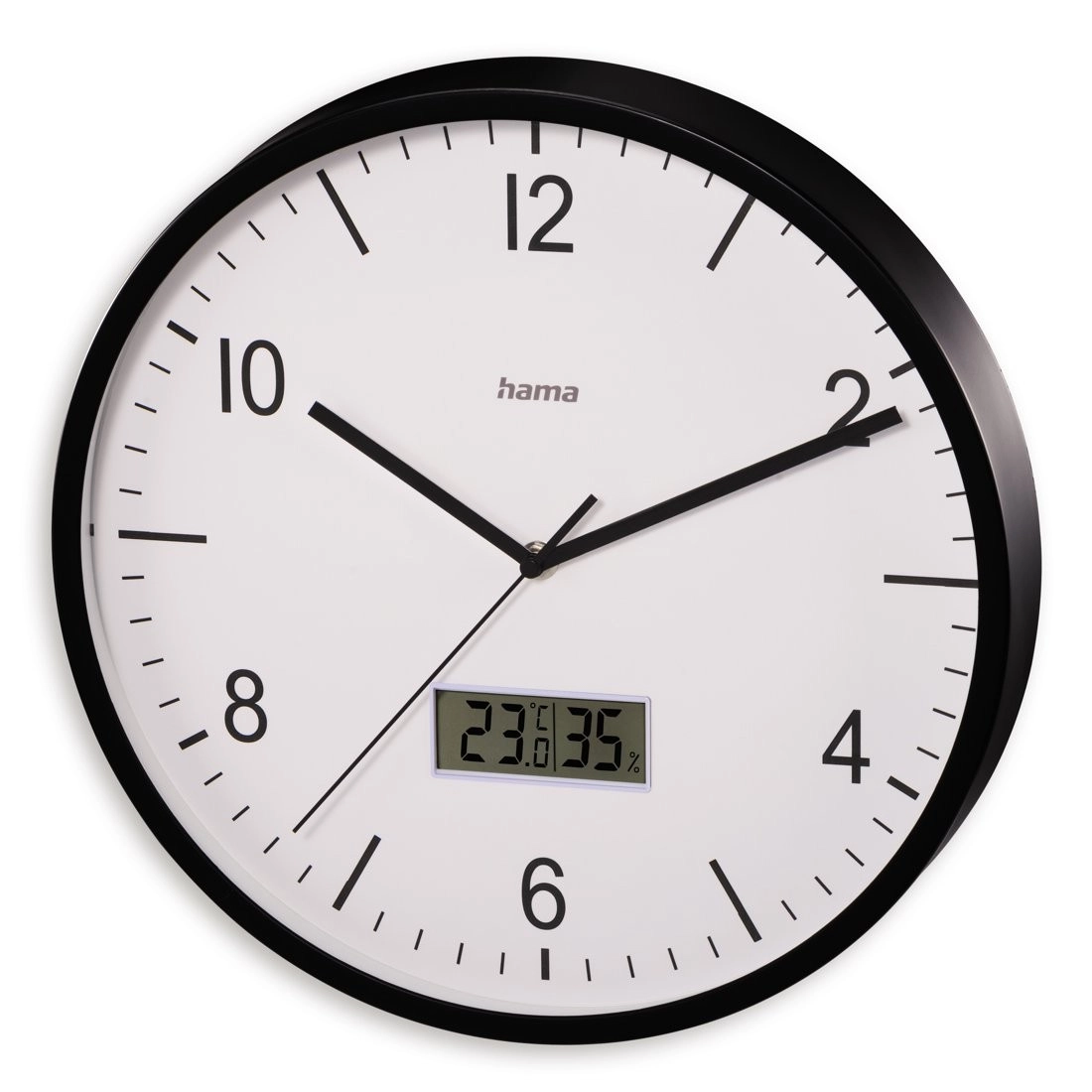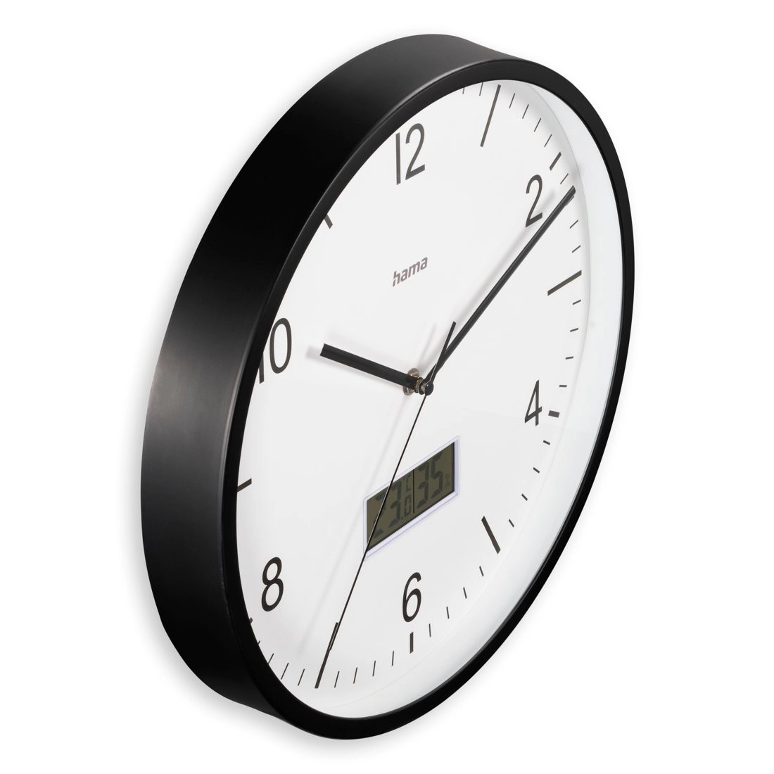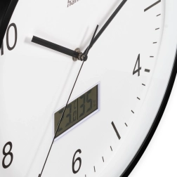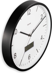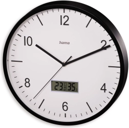 Елегантен стенен часовник с голям, четлив циферблат, който комбинира аналогово време и ясен цифров дисплей. Благодарение на приемника DCF часовникът се синхронизира автоматично, тихият ход без тиктакане не нарушава съня или работата, а вграденият хигрометър и термометър помагат да следите климата в помещението. Вечният дизайн подхожда на кухня, всекидневна и баня.