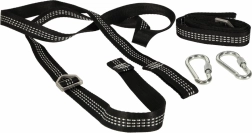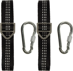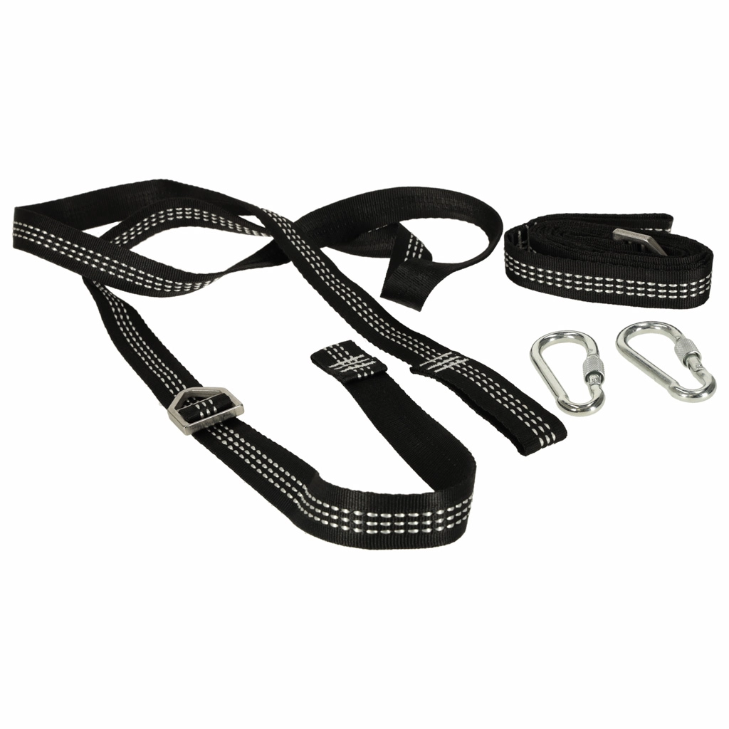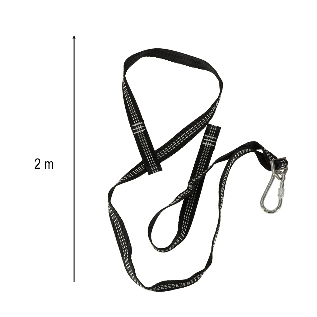 Идеален монтажен комплект за всички любители на люлеенето, както за градината и терасата, така и за интериора. Комплектът включва два високоустойчиви ремъка с дължина 2 метра и две карабини с максимална товароносимост 300 кг. Това гарантира стабилност и безопасност дори при интензивна употреба.