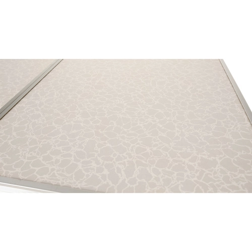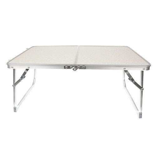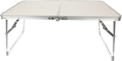 Комбинацията от MDF плот и алуминиеви елементи е лека, здрава и подходяща за използване в градината и на къмпинг.