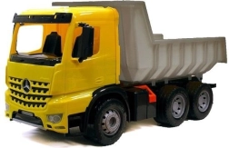 Този детски самосвал Mercedes Giants Dump Truck предлага невероятно забавление за децата. Моделът AROCS е триосен с реалистичен дизайн, включително жълта кабина, черно шаси и сребристо ремарке.