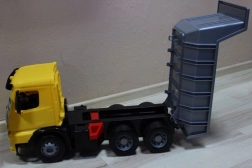Самосвалът има блокировка на ремаркето, която повишава стабилността и позволява на децата да седят върху него безопасно.