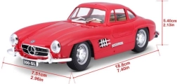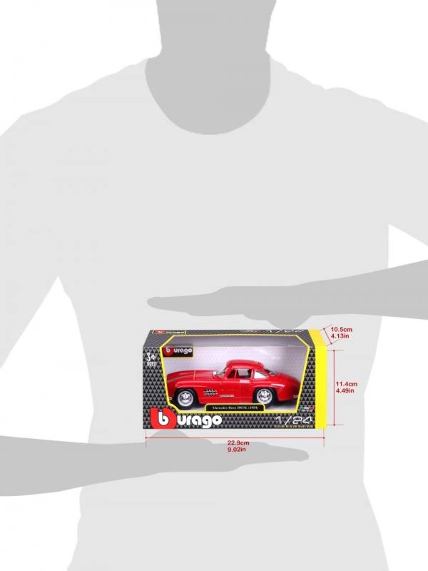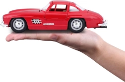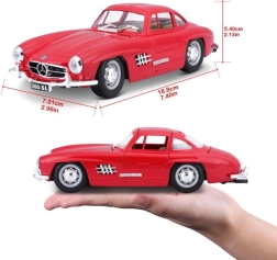 Открийте непреходната елегантност на MERCEDES‑BENZ 300 SL в прецизното изпълнение на BBURAGO. Червеното боядисване, фините хромирани детайли и вярната пропорционалност го превръщат във впечатляващ акцент за витрина или офис бюро. Благодарение на металната каросерия (die‑cast) моделът изглежда ценен и издръжлив.