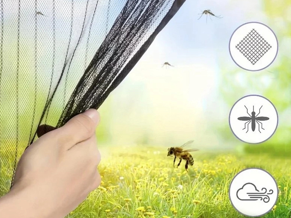 Защита от насекоми без компромиси – наслаждавайте се на свеж въздух без досадни насекоми. Фината полиестерна мрежа с подсилен кант надеждно предотвратява влизането на комари, мухи, оси или пчели, без да ограничава светлината и вентилацията в интериора.