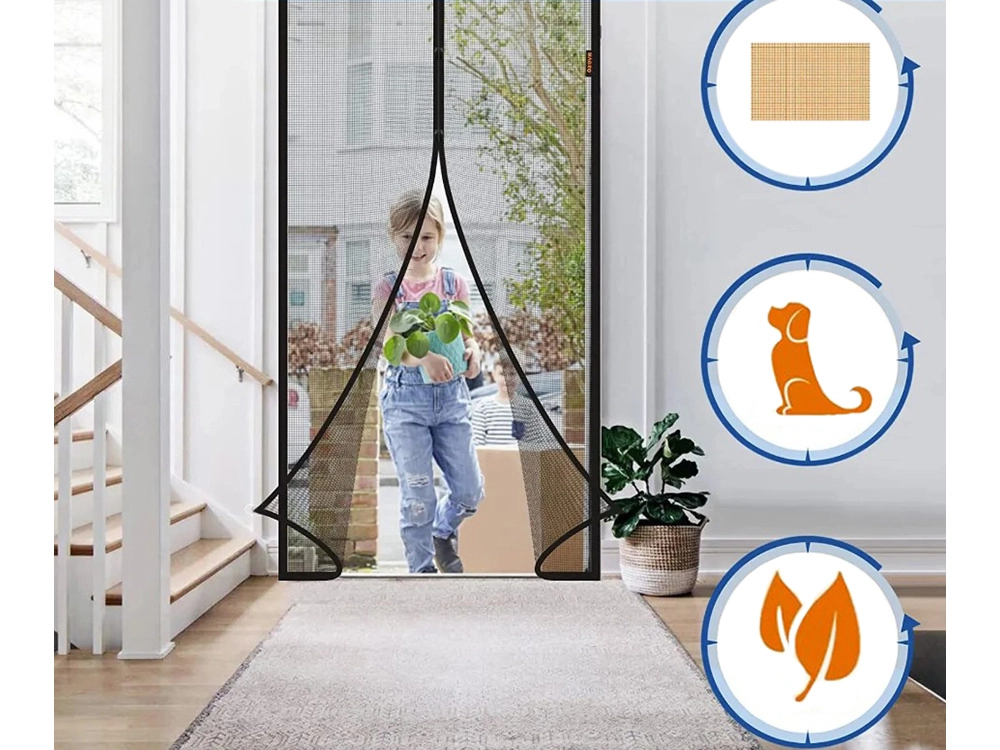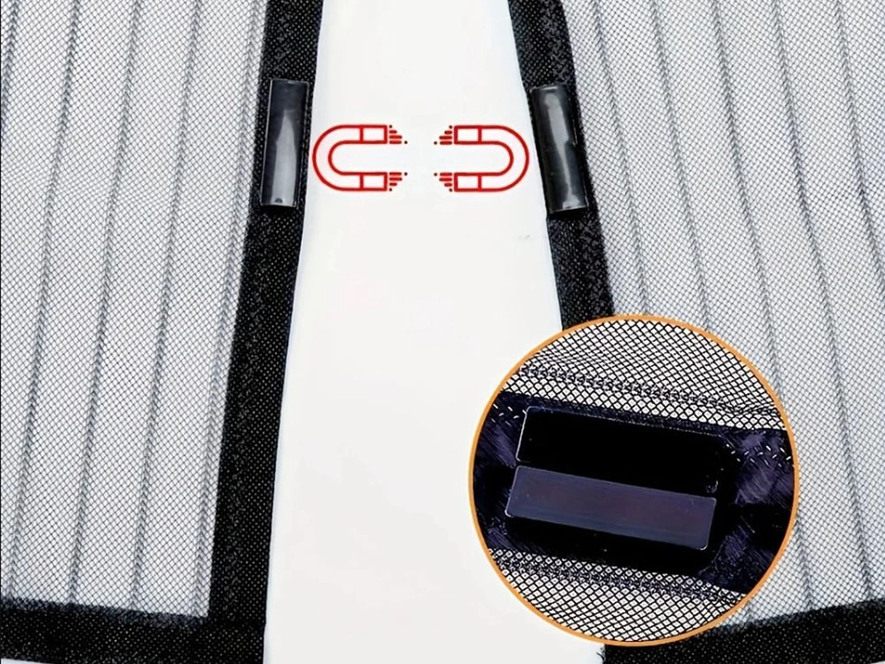 Светкавичен монтаж и удобно използване – мрежата се монтира с велкро ленти, така че се инсталира без инструменти. Централните части се съединяват автоматично с магнити, което позволява удобен проход към балкона или терасата дори с пълни ръце.